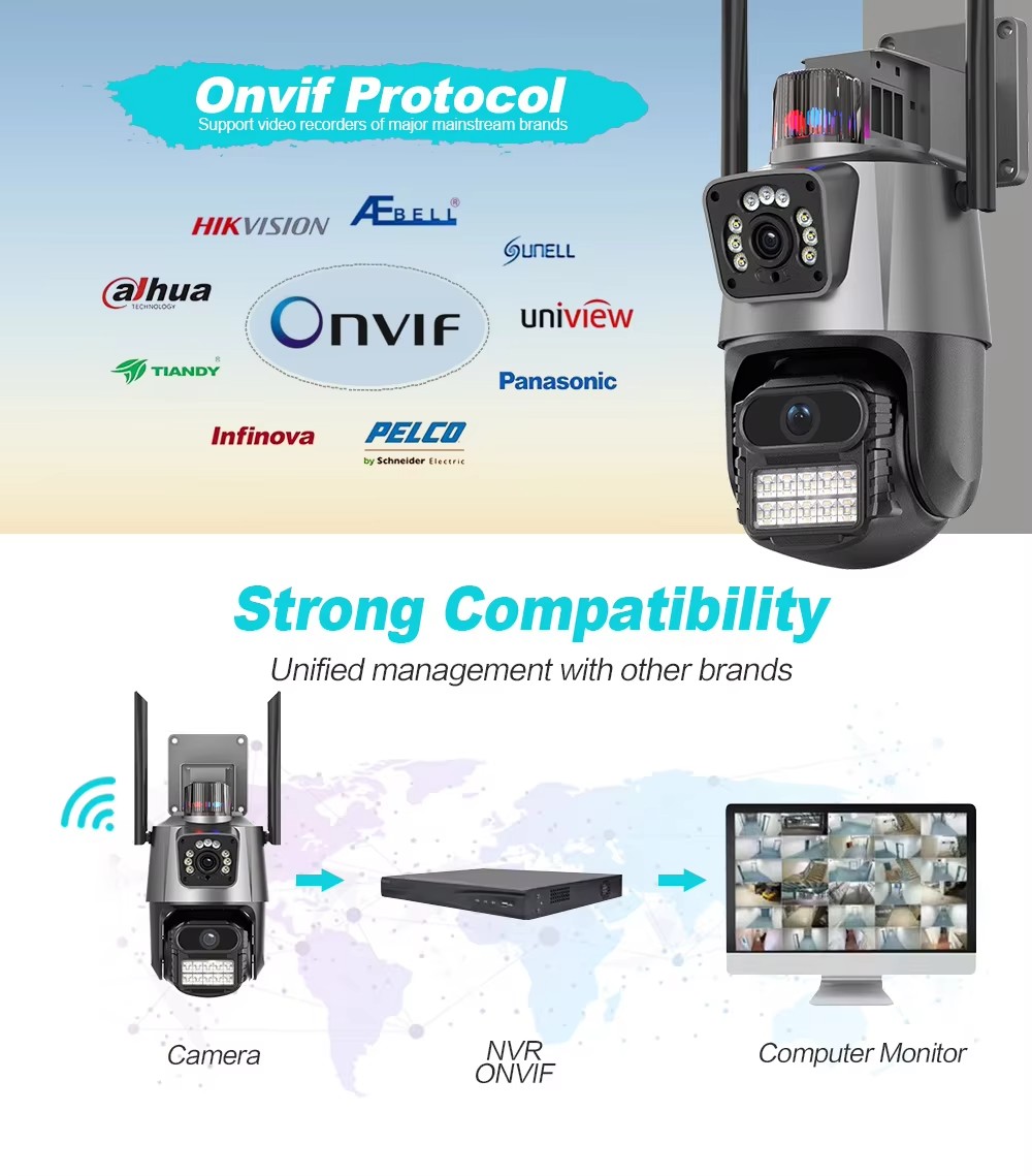 Dualni ekran pruža korisniku mogućnost praćenja dva različita prikaza istovremeno. Ova opcija je posebno korisna u situacijama gde je potrebno nadgledati više tačaka u isto vreme, kao što su dvorište i ulazna vrata. Sa funkcijom 4x optičkog zuma, kamera pruža kristalno čiste slike čak i kada zumirate, omogućavajući da vidite detalje koji bi inače bili neprimetni.