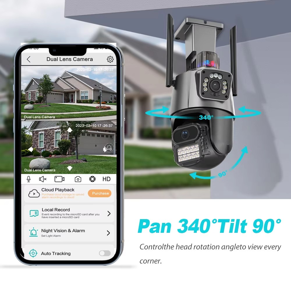 Jedna od najimpresivnijih karakteristika ove kamere je dualni objektiv koji omogućava bolje praćenje i detaljan nadzor. Zahvaljujući ovom dvostrukom objektivu, kamera može pokriti širu površinu u odnosu na standardne kamere. Ovo vam omogućava da dobijete jasniju i širu sliku bez potrebe za postavljanjem dodatnih kamera na različitim lokacijama.