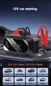 GKFLY 4 u 1 Auto Startni Uređaj je multifunkcionalni uređaj dizajniran za vozače koji žele sigurnost i praktičnost u svakodnevnom životu. Sa 2000A vršnim strujnim kapacitetom, ovaj uređaj može brzo pokrenuti vozila sa 12V sistemom, uključujući benzinske motore do 6L i dizel motore do 4.5L.