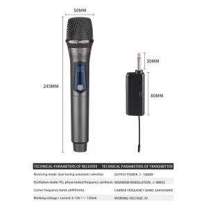 Bežični mikrofon UHF je savršen izbor za svakog ko traži kvalitetan zvuk i jednostavnost upotrebe. S njegovim inovativnim dizajnom i naprednom tehnologijom, ovaj mikrofon pruža jasnu i snažnu audio produkciju, što ga čini idealnim za karaoke, zabave, crkvene događaje, sastanke i druge vrste nastupa.