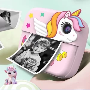Digitalni dečiji fotoaparat sa štampačem predstavlja idealan prvi uređaj za decu od 5 do 11 godina, koji podržava slikanje, snimanje videa, selfie funkciju i trenutni toplinski (thermal) štampanje crno-belih fotografija. Uređaj ima intuitivan interfejs sa slikovitim ikonama i velikim dugmadima, prilagođen za upotrebu i samostalno rukovanje.