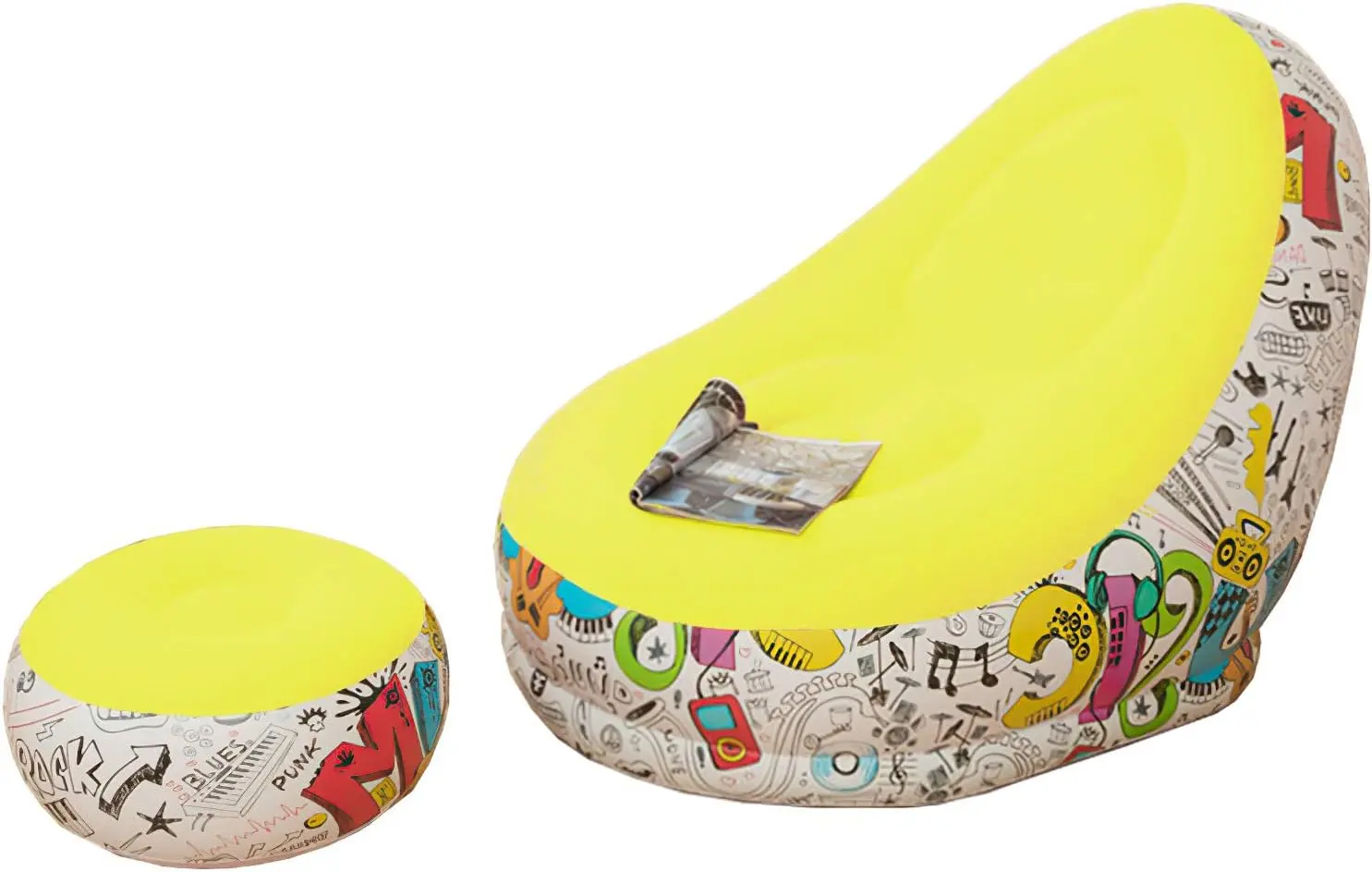 Šarena Fotelja na naduvavanje sa Tabureom – Udobna i Praktična za Dom i Dvorište