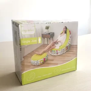 Fotelja na naduvavanje dolazi u veselim i jarkim bojama koje unose život u svaki prostor. Šareni uzorak ne samo da privlači pažnju, već podiže energiju i atmosferu – bilo da je koristite za čitanje, gledanje filmova, druženje ili popodnevni odmor.