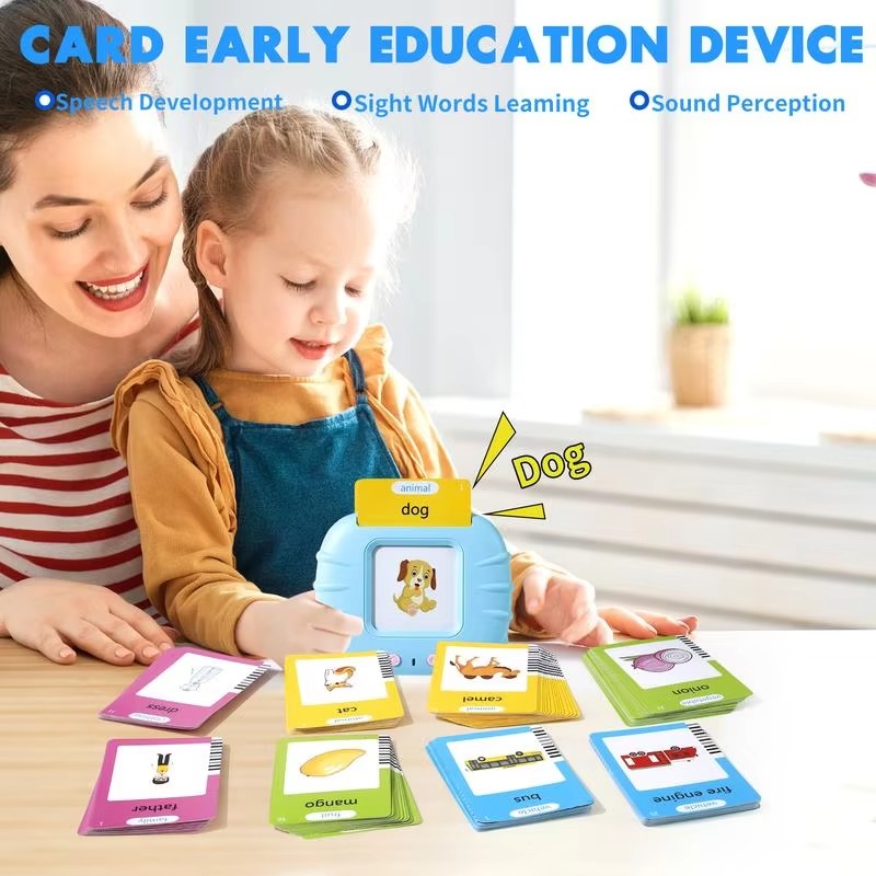 Ova zvučna igračka za učenje engleskog jezika funkcioniše na principu kartica sa slikama i rečima. Set uključuje veliki broj tematskih kartica sa pojmovima sa obe strane, kao što su životinje, predmeti iz svakodnevnog života, boje, brojevi i još mnogo toga. Na svakoj kartici nalazi se slika određenog pojma, dok je na poleđini ispisana odgovarajuća reč na engleskom jeziku. Kada dete umetne karticu u slot na igrački, uređaj glasno izgovara reč sa kartice, omogućavajući detetu da poveže zvuk sa slikom i tako efikasnije usvoji reč.