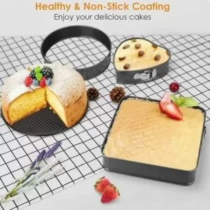 Nelepljiv Kalup za Torte – Set od 3 – Okrugli, Srcoliki i Kvadratni Kalupi sa Uklonjivim Dnom i Mehanizmom za Otvaranje