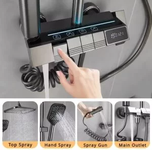 Sa ugrađenim digitalnim displejem, lako pratite i podešavate temperaturu vode u realnom vremenu, što je posebno korisno za decu, starije osobe i sve koji žele preciznu kontrolu. Pored toga, uživaćete u više režima mlaza – od nežnog, opuštajućeg kišnog tuša do snažnog osveženja koje energizuje telo.