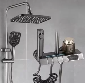 Pametni zidni tuš sa digitalnim displejem i više režima mlaza pruža luksuzno i kontrolisano tuširanje. Moderan dizajn, precizna kontrola temperature i jednostavna montaža čine ga savršenim dodatkom za svako kupatilo.