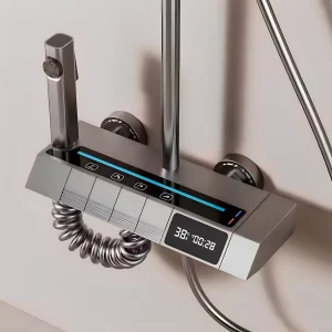 Pretvorite svoje svakodnevno tuširanje u spa iskustvo uz pametan zidni tuš sa digitalnom kontrolom i više režima mlaza. Ovaj moderno dizajnirani tuš sistem kombinuje najnoviju tehnologiju, praktičnost i sofisticirani izgled – idealan dodatak za svako savremeno kupatilo.