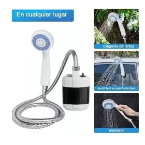 Prenosivi tuš je kompaktan, lagan i lako staje u ranac, torbu za kampovanje ili gepek automobila. Dolazi sa kukom i držačem za postavljanje bilo gde – na drvo, auto, šator, ogradu i sl.