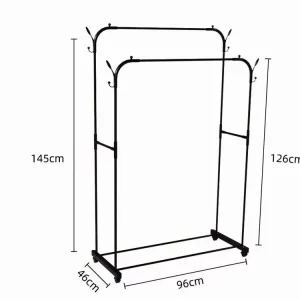 Stalak za garderobu dvostruki je Idealna vešalica za svakodnevnu upotrebu.Dve šine za odeću mogu da drže duplo više odeće od jedne, kao i dve bočne police za odeću.