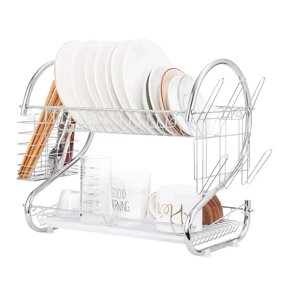 Opremljena je plastičnom tacnom dizajniranom da održava kuhinjski pult čistim i suvim. može da primi tanjire i posuđe različitih veličina što ga čini odličnim kuhinjskim dodacima za stanove, spavaonice i kuhinje sa ograničenim prostorom na radnoj površini.