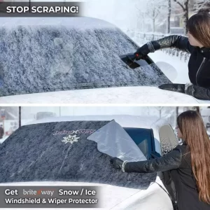Zimski meseci donose druge izazove. Svako jutro provoditi vreme stružući led i sneg sa vetrobranskog stakla može biti veoma frustrirajuće, posebno u hladnim vremenskim uslovima. Crna strana zaštite okrenuta prema spolja pomaže u sprečavanju nakupljanja snega, leda i mraza na staklu. Time se štedi vreme i energija, a vozač može brzo krenuti na put bez dodatnog napora. Ovaj proizvod takođe smanjuje rizik od ogrebotina na staklu koje mogu nastati prilikom agresivnog čišćenja leda.